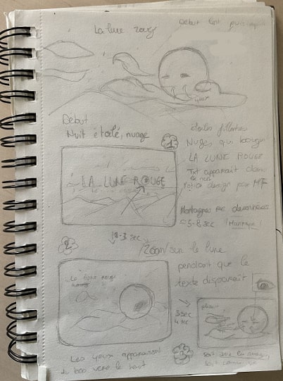J’ai voulu représenter chaque ver du poème par un visuel mettant en scène ces mots. Cette animation est à la fois un voyage à travers l’espace, mais aussi à travers différents éléments de la nature (eau, terre, air).
